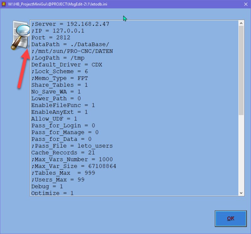 сборка лежит в hmg и сервер для windows, так что вполне может быть привязан к MiniGui, но отпадают мелькающие черные экраны с использованием leto_ProcessRun(...), она хороша, но ... не всегда. Я беру и в каталог Advanced\LetoDbf кладу каталог Letodbf-master, в нем делаю _Build.bat с одной строкой call ..\..\..\..\batch\hbmk2.bat /n %* letodb.hbp и _Build_udf.bat (letoudf.prg кладу в SOURCE) со строками @echo off SET UDF=.\SOURCE if exist letoudf.hrb del letoudf.hrb > nul call ..\..\..\..\batch\hbmk2.bat letoudf.hbp if exist letoudf.hrb move letoudf.hrb %UDF%\letoudf.hrb