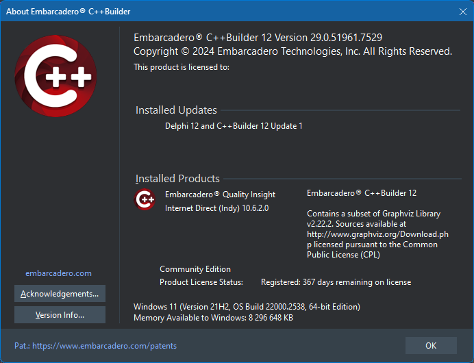 После установки свежей версии C++Builder 12.1 Athens Community Edition