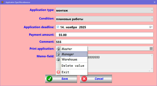 oFrm2:aName := { "Application type", "Condition" , "Application deadline", "Payment amount", "Comment" , "Print application", "Memo-field" }