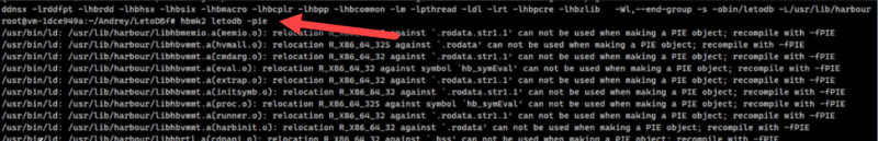 Поставил флаг в letodb.hbp -cflag=-fPIE Такая же ошибка. И как собрать ?